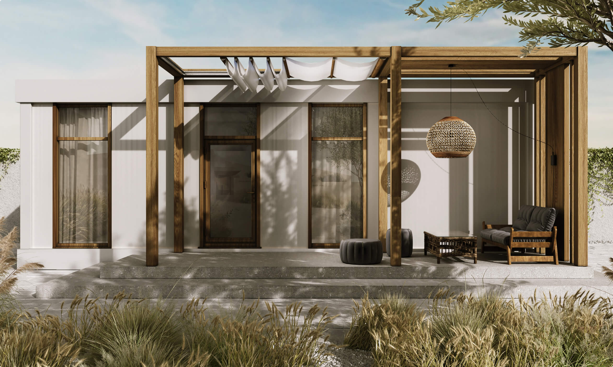 - Габарити: 3,5х9,0м + тераса 2,0х6,5м