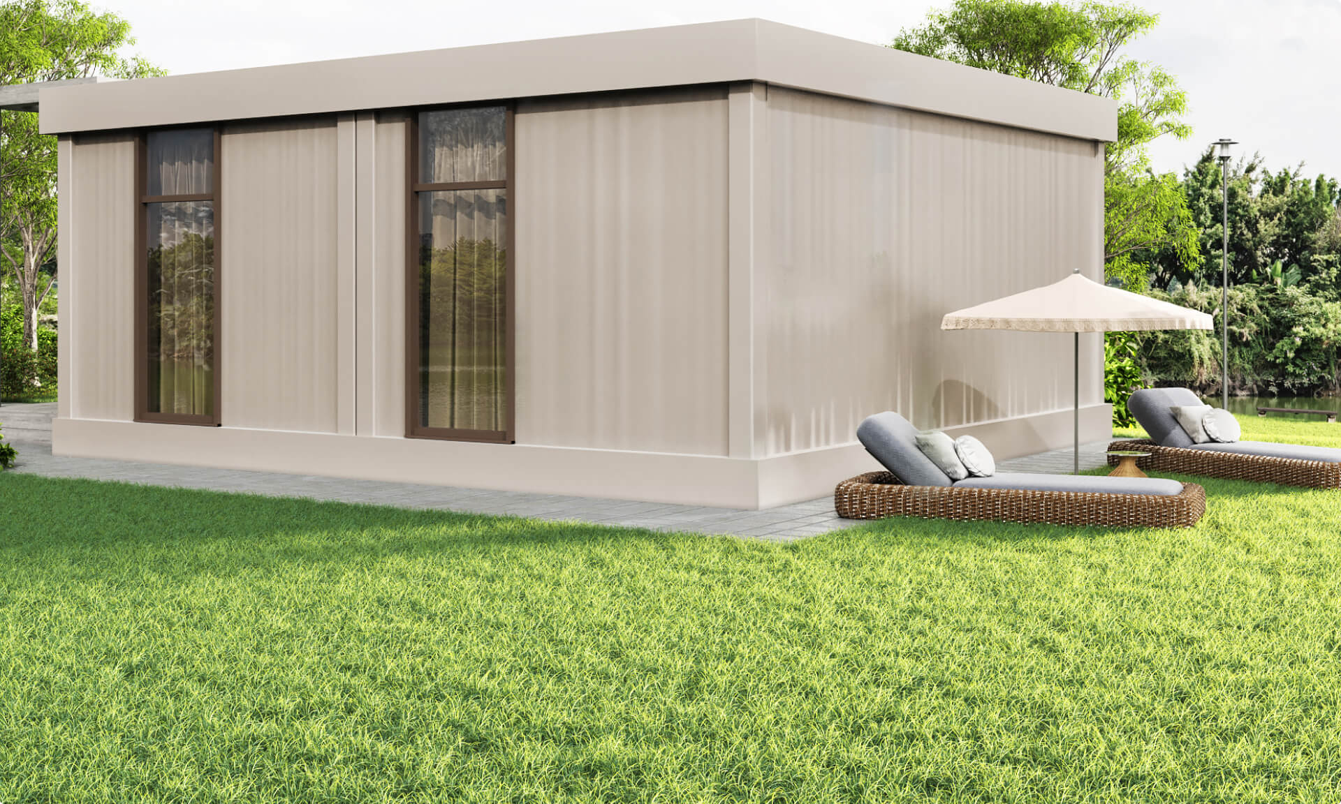 - Покрівля: плоска, подвійний фальц, металеві балки. Утеплювач PIR 120мм